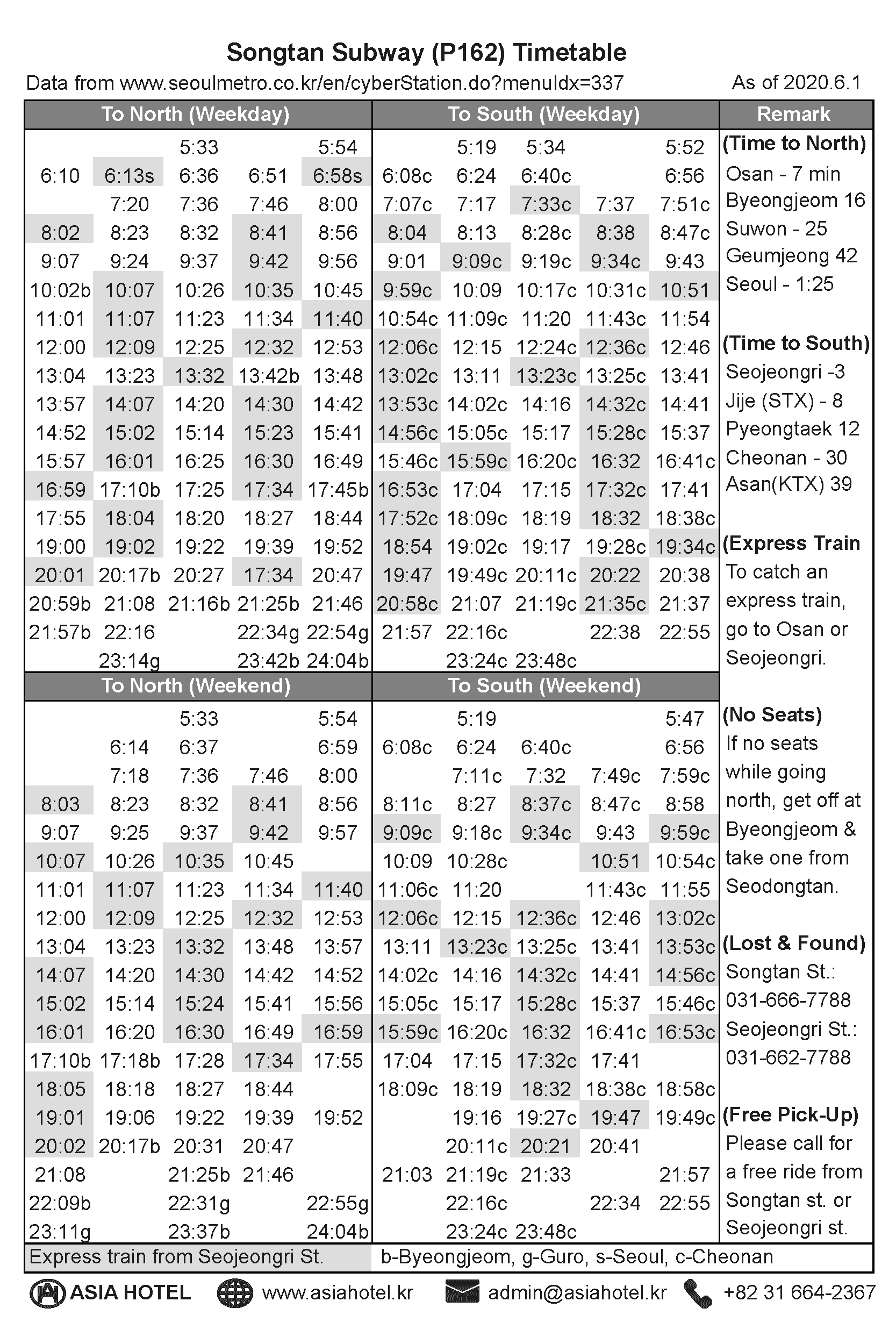Jun 2020 - Songtan Subway Timetable PDF PNG SVG